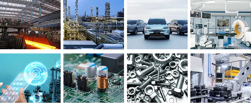 మేము ఇప్పుడు స్టీల్, కెమికల్, ఆటోమోటివ్, మెడికల్, కమ్యూనికేషన్స్, ఎలక్ట్రానిక్స్, హార్డ్వేర్, మెషినరీ తయారీ, కొత్త శక్తి, ఆహారం మరియు పానీయాలు, ఫర్నిచర్ మరియు ప్యాకేజింగ్తో సహా వివిధ పరిశ్రమలలోని క్లయింట్లతో విస్తృతమైన భాగస్వామ్యాన్ని ఏర్పాటు చేసాము.