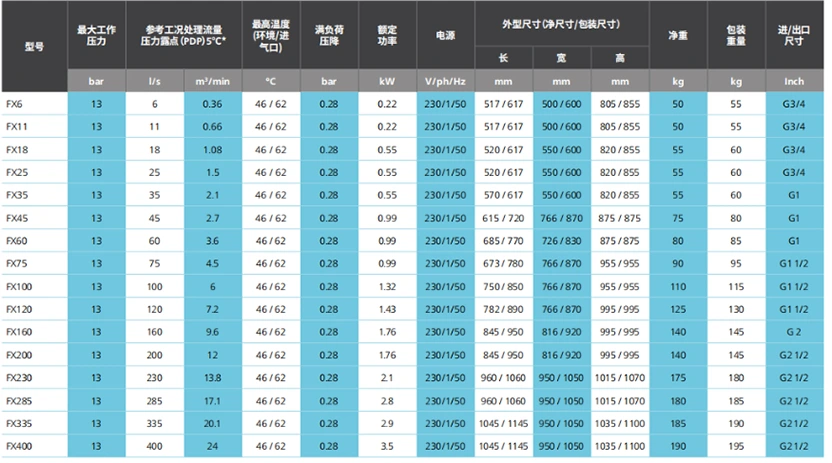 వివిధ ఆపరేటింగ్ పరిస్థితులలో శీతలీకరణ సామర్థ్యాన్ని నిర్వహించండి మరియు కండెన్సేట్ గడ్డకట్టడం మరియు అడ్డుపడే ప్రమాదాన్ని నివారించడానికి స్థిరమైన ఒత్తిడి మంచు బిందువును ఉంచండి.