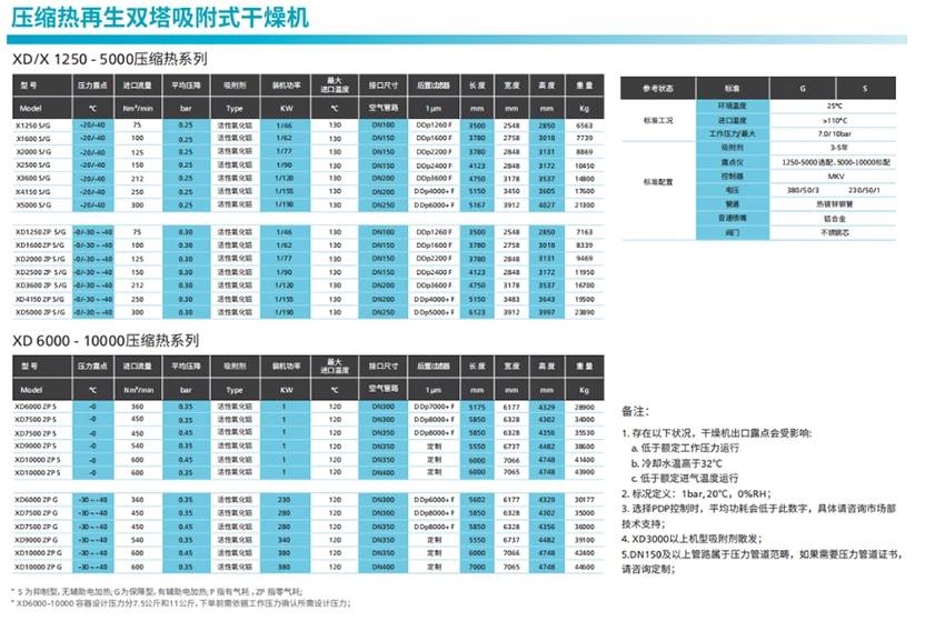 XD లేదా X కంప్రెషన్ హీట్ అడ్సార్ప్షన్ డ్రైయర్లు అధిక-నాణ్యత కలిగిన యాడ్సోర్బెంట్లను ఉపయోగిస్తాయి మరియు ఆయిల్-ఫ్రీ కంప్రెసర్ నుండి కంప్రెషన్ వేడిని సమర్ధవంతంగా శోషక పునరుత్పత్తికి ఉపయోగించుకుంటాయి, శక్తి వినియోగం మరియు నిర్వహణ ఖర్చులను గణనీయంగా తగ్గిస్తుంది.
