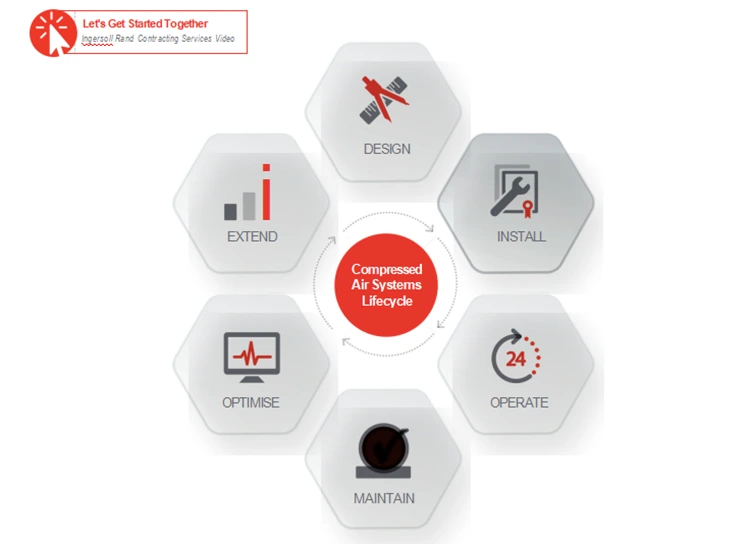 విశ్వసనీయత, తక్కువ నిర్వహణ ఖర్చులు, సేవా సౌలభ్యం మరియు సిస్టమ్ ఆప్టిమైజేషన్ని నిర్ధారించడానికి మా విస్తృతమైన అనుభవం మరియు ప్రపంచ నైపుణ్యం ద్వారా మీ వ్యాపారం ఇంగర్సోల్ రాండ్ భాగస్వామ్యం నుండి ప్రయోజనం పొందుతుంది.