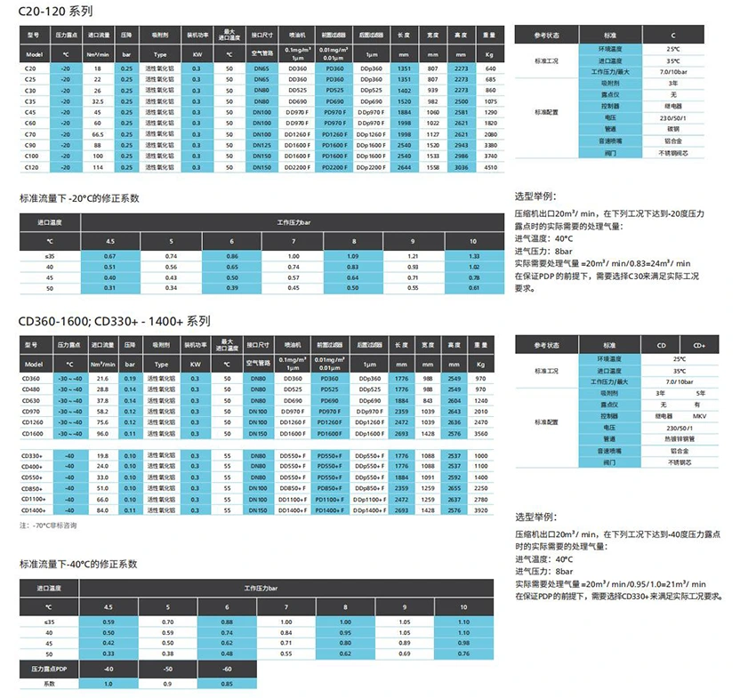 హీట్లెస్ రీజెనరేటివ్ అడ్సార్ప్షన్ డ్రైయర్ C, CD, CD+